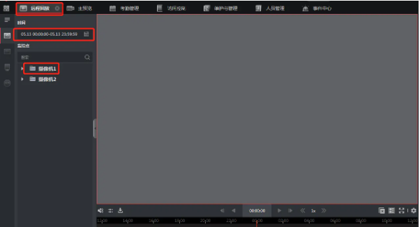 點(diǎn)擊(jī)“遠程回放”,選擇回放時間及監控點(diǎn)即可。