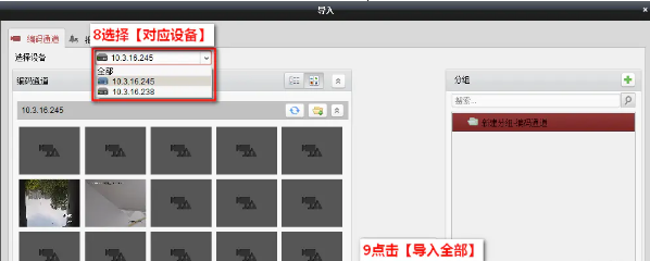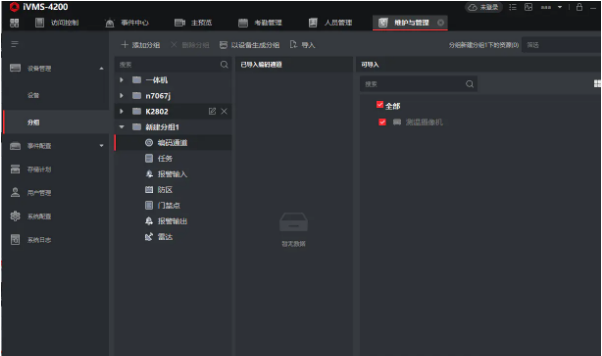 選中新建分組—點擊導(dǎo)入—選擇對應設備(bèi)—點擊需要放入該分組的監控點。