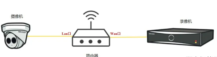 攝像機連接到瞭(le)路由器的LAN口,而錄像機連接在路由器的WAN口,所以攝像機的網段和錄像機的網段並(bìng)不在一個網段。