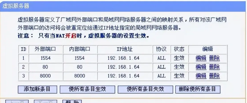 “配置”—“虛拟服務器”/“端口映射”/“轉發(fā)規(guī)則”,進行映射端口的操作。