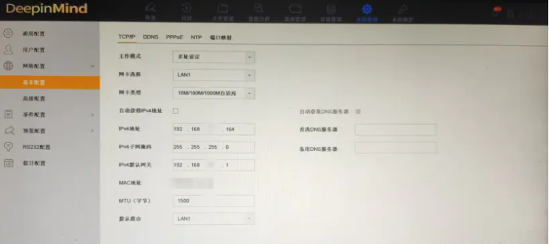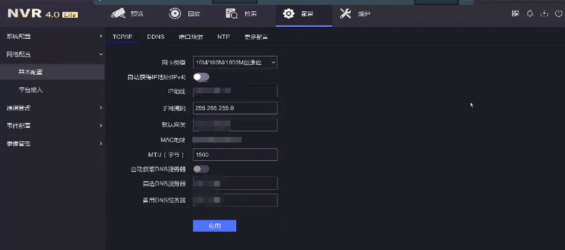 NVR4.0lite錄像機(jī)菜單(dān)頁面IP查看路徑:配置—網絡配置—基本配置