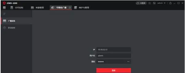 在可視化廣(guǎng)播-廣(guǎng)播系統輸入廣(guǎng)播系統IP、用戶(hù)名/密碼(默認admin/admin)登陸廣(guǎng)播系統【初次登陸成功,系統其他功能才可用】