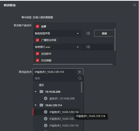 2、事件聯動(dòng)彈(dàn)窗緊急廣播(喊話/播放音頻):