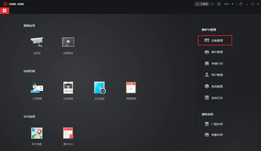 打開客戶端,點擊右側(cè)維護與管理-設備(bèi)管理,進入設備(bèi)添加界面