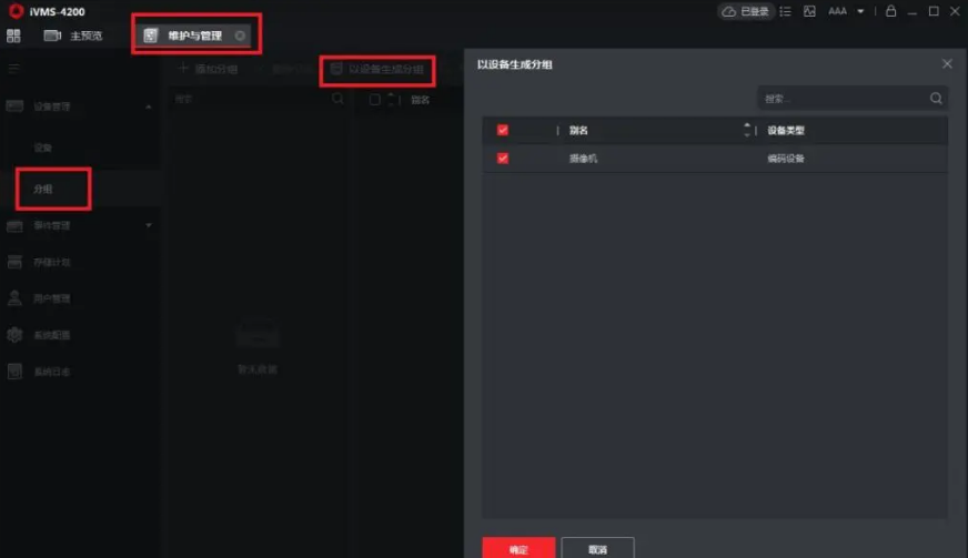 進入維護(hù)與管理–設備(bèi)管理–分組–以設備(bèi)生成分組,找到設備(bèi),添加到分組中