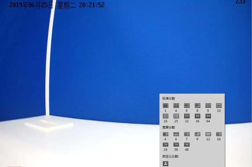 多畫面觀(guān)看時需要視圖分割功能,點(diǎn)擊預覽畫面左下角,視圖分割按鈕,根據需要選擇想要顯示的視圖分割模式。
