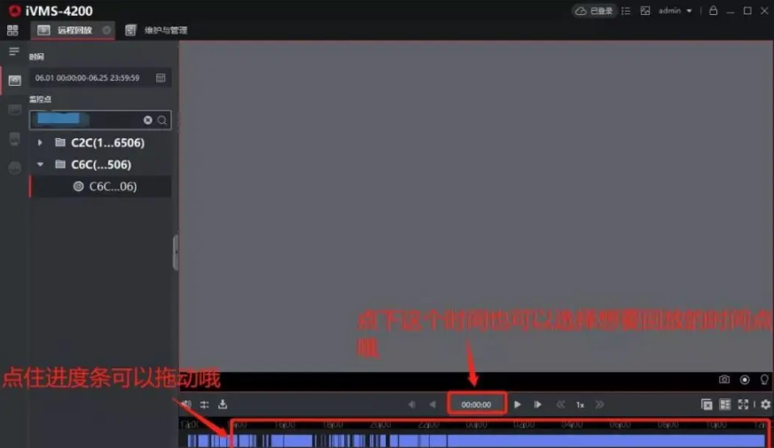 想要切換回放的日期,可以點(diǎn)擊進度條回放對(duì)應日期的錄像