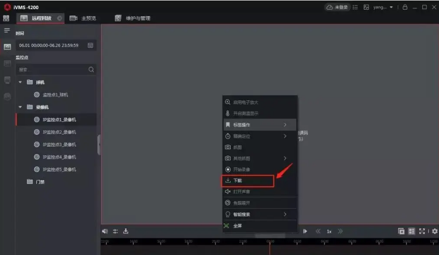 在回放界面回放出錄像後,可直接點下鼠标右鍵,選擇下載,然後選擇下載錄像的起止時間,輸入文件名稱(chēng)就可以瞭(le)。