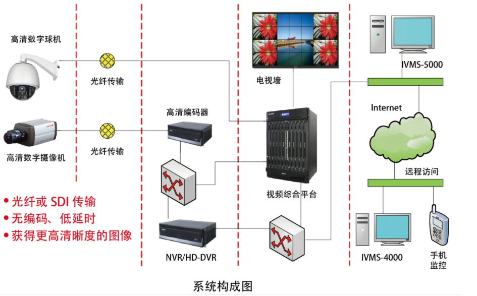 2、傳輸部分;使用網線、光纜、電線等,採取架空、地埋或沿牆敷設等方式傳輸視頻、音頻或控制信号等。