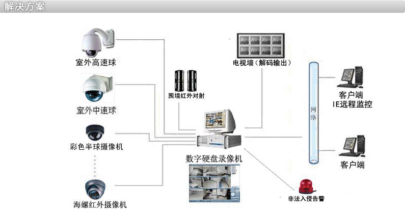 報警設備:主要分爲報警探測裝置、報警主機、聲光報警設備三大部分。探測裝置採用紅外、電子圍欄、微波等探測技術,在無人值守的部位,将入侵信号通過無線或有線方式傳(chuán)送到報(bào)警系統主機,進行聲光報警、自動電話報警,並(bìng)可自動将報(bào)警信息報(bào)告給報(bào)警系統中心或個人,以便迅速響應。